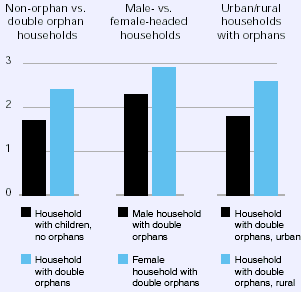 Dr. Eric Gondwe is the founder of Jesus Work Ministry, an evangelical ministry which has an allied network of websites. A. AIDS Effects & Consequences on Children 1) Decreased access to adequate nutrition, basic health care, housing, education, and clothing, 2) Street living for many in urban areas with little or no adequate support from extended family, 3) Grief and trauma over the loss of a parent(s) and living with worsened social and economic support. Parental love and emotional support is often less in foster care than from biological parents, 4) Increased psychosocial problems. A study in Brazzaville, Congo, of 354 children who had lost one or more parents to HIV/AIDS, found that 71 were suffering from some kind of psychosocial problem. Of these, 39 percent were affected by ‘posttraumatic stress’. Another 27 percent were suffering from problems of ‘adaptation’, which could take the form of running away from school or home or various types of offensive or “hyperkinetic” behavior. The final 34 percent had ‘affective’ problems: depression, anxiety, irritability, or feelings of rivalry (UNICEF, Africa’s Orphaned Generations, 2003, p.30), 5) Vulnerability to exploitation due to decreased social and economic support. Exploitation includes child labor, physical and sexual abuse, 6) Increased involvement in crime and prostitution as means to survive, 7) Decreased future prospects. UNICEF surveyed the effects orphaning has on schooling and child labor in 20 sub-Saharan African countries. In all countries, children aged 5-14 who had lost one or both parents were less likely to be in school and more likely to be working more than 40 hours a week (UNICEF, Children on the Brink 2002, p.10). B. AIDS Effects & Consequences on Families 1) Extended families assume responsibility for the orphans. Extended families often severely ill equipped have assumed responsibility for more than 90 per cent of orphaned children. A survey of four hundred households with orphans in Mwanza, Tanzania, reported that almost 40 per cent could not cover even basic expenses. The most common difficulty was school fees, including those for materials and uniforms (UNICEF, Africa’s Orphaned Generations, 2003, p.18), 2) Extended family members often share the responsibility of caring for orphans resulting in the orphaned siblings living in different homes. In Zambia, nearly 60 percent of a sample of orphaned children had been separated from their siblings; nearly four out of five saw their brothers and sisters less than once a month (Ibid., p.22), 3) Increased need for extra sources of income. A study of Ugandan households in 2000 showed that foster care increased already worsened poverty in households. Those dependent on subsistence agriculture faced an urgent need to increase cash income to pay for extra commodities. Those relying more on wage-earning activities reported that their incomes were not enough to cope with the additional mouths to feed (UNICEF, Children on the Brink 2002, p.11). 4) Decreased standards of living due to caring for extended family needs. This includes more crowded living conditions and increased family budget. Households with orphans are more likely to become poorer. This is because of the increased ‘dependency ratio,’ that is, the household income of fewer earning adults is sustaining more dependents (see Figure 5 below). In the worst-affected countries in sub-Saharan Africa, households with orphans have higher dependency ratios than those with children but no orphans (UNICEF, Africa’s Orphaned Generations, 2003, p.15), 5) Increased burden on female-headed households. In developing nations female-headed households are poorer than male-headed households. An increased burden of orphans worsens their poverty. A survey in 2002 of four Zambian districts found that the average income of female-headed households with orphans was only around half that of male-headed households with orphans (Ibid. p.17). Female-headed households with orphans, particularly in rural areas, have the highest dependency ratios. The dependency ratio indicates the number of people in a household who must rely on each adult for food security and other provisions. Among female-headed households the number is almost 3 (see Figure 6 below). Figure 5: Dependency Ratios in Uganda: Orphan households have more dependants and lower income (Source: UNICEF, Africa’s Orphaned Generations, 2003, p.15), Figure 6: Dependency Ratios in the United Republic of Tanzania, 1999: adults in orphan households have more dependents, particularly in female-headed households (Source: UNICEF, Africa’s Orphaned Generations, 2003, p.17) C. AIDS Effects & Consequences on Communities and Society 1) Increased demand for health care services. As the toll of HIV/AIDS increases the demand for health care services to help and support the patients also increases, 2) Reduced economic output. As highly skilled personnel in business, education, public management, social and medical services, and so on, become ill and die in large numbers due to HIV/AIDS, the overall economic productivity is reduced. Gains from decades of social and economic development have been reversed in a single decade in parts were AIDS has been most severe. Even rural areas have suffered drastic losses in agricultural output. In Thailand, Asia, one third of rural families affected by AIDS have experienced a halving of their agriculture output, which threatens their food security. Around 15 per cent have had to take their children out of school, and over half of the elderly have been left to fend for themselves. In Cambodia, with one of the highest rates of HIV prevalence in Asia, it is estimated that between 2000 and 2005 70 percent of AIDS-related deaths will occur among people aged 20 to 44, the most productive sector of the economy (UNICEF: Atlas03 Book 22/04, Chap. 5: Combating HIV and AIDS, p.87), 3) Expenditure on non-productive resources. HIV/AIDS employees who 